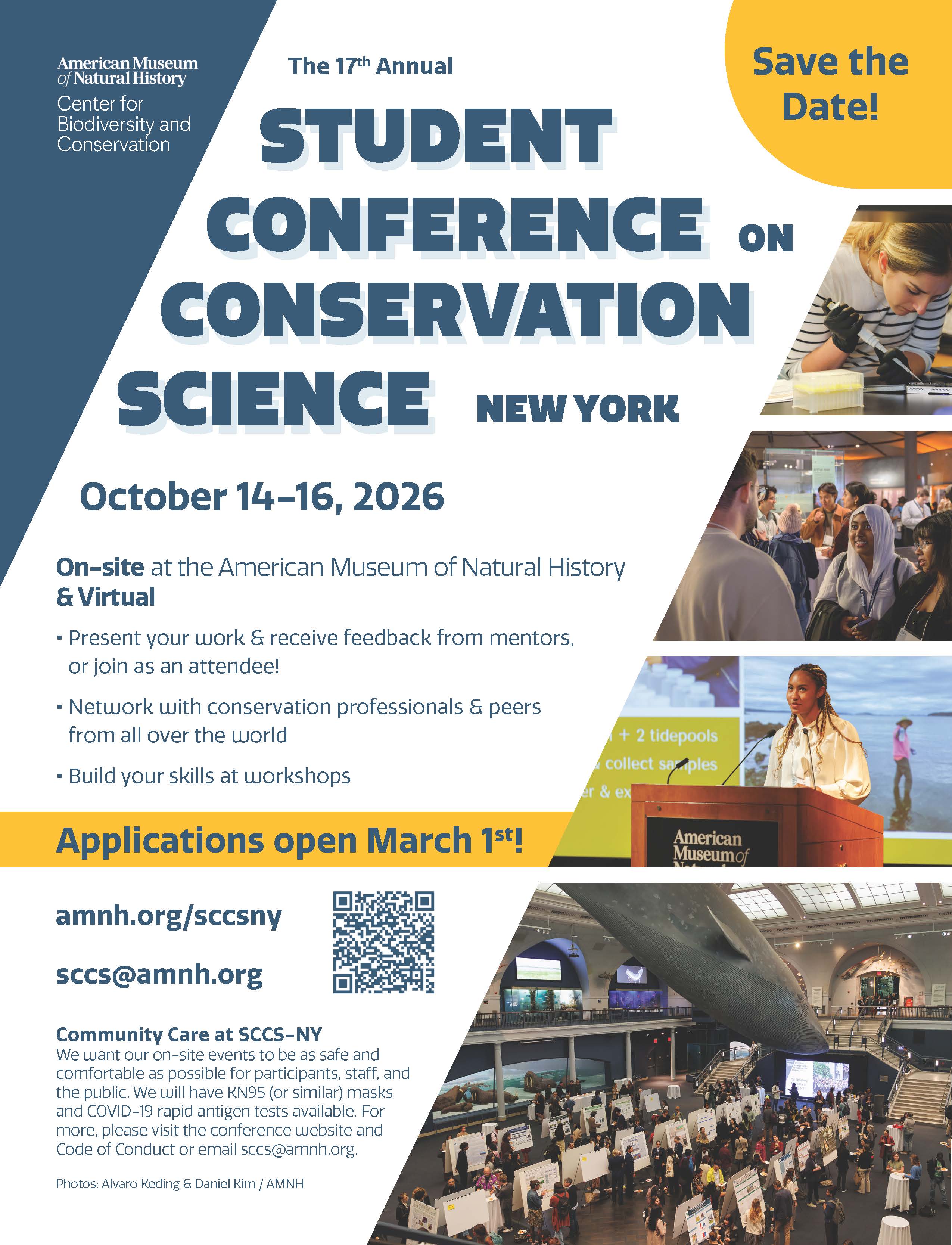The 17th Student annual Conference on Conservation Science–New York will be October 14–16, 2026! Applications to present a talk, speed talk, or poster are open from March 1 through April 1.